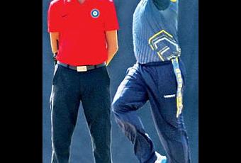 Thursday while standing for the Kerala-Haryana match, and has been wearing it