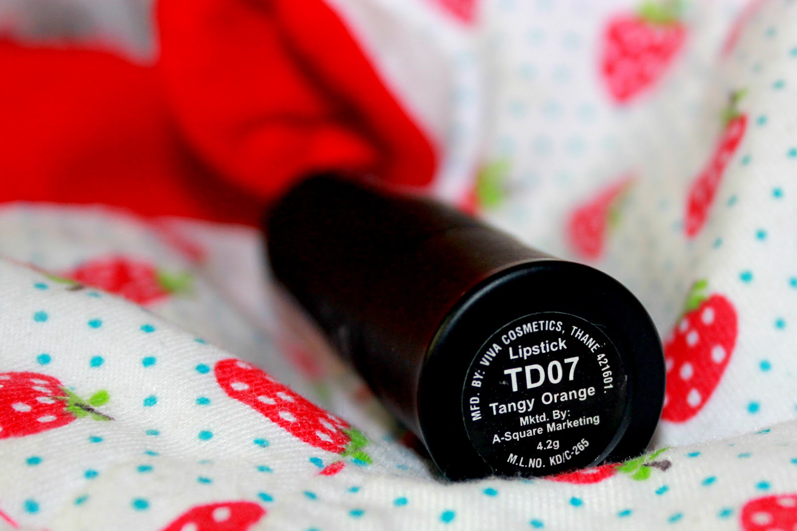 My views about Nelf Usa Tangy Orange Trendy Diva LipstickThe tangy orange lipstick comes in a black plastic case and has a cap with little see through area that helps to know the shade quickly if you keep them in a vanity box. It isn’t good in pigmentation and needs about 7-8 swipes on my dark lips to get the required color. Also the shade isn’t something that I will prefer for everyday use. It looks good only in the pictures and maybe someone who wears all things bold will love this. The shade I feel is little too bold tangy orange coloured to be worn for my wheatish skin, though fair beauty for someone with pink lips may like it. The stay power of this lipstick is of 3-4 hours with eating and drinking.