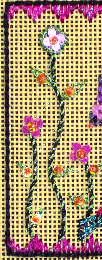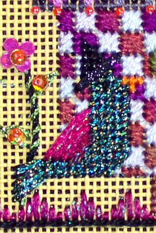 And here it is finished! As you may have noticed from the line of chain stitches surrounding the design, like my previous "Spring Garden" series, this one too is a project you can finish yourself should you choose. I finished this one as a Cracker ornament, albeit it is a bit larger than most, the stitched area is 3" x 4, giving you a finished piece somewhere between Cracker and Roll Up in size.