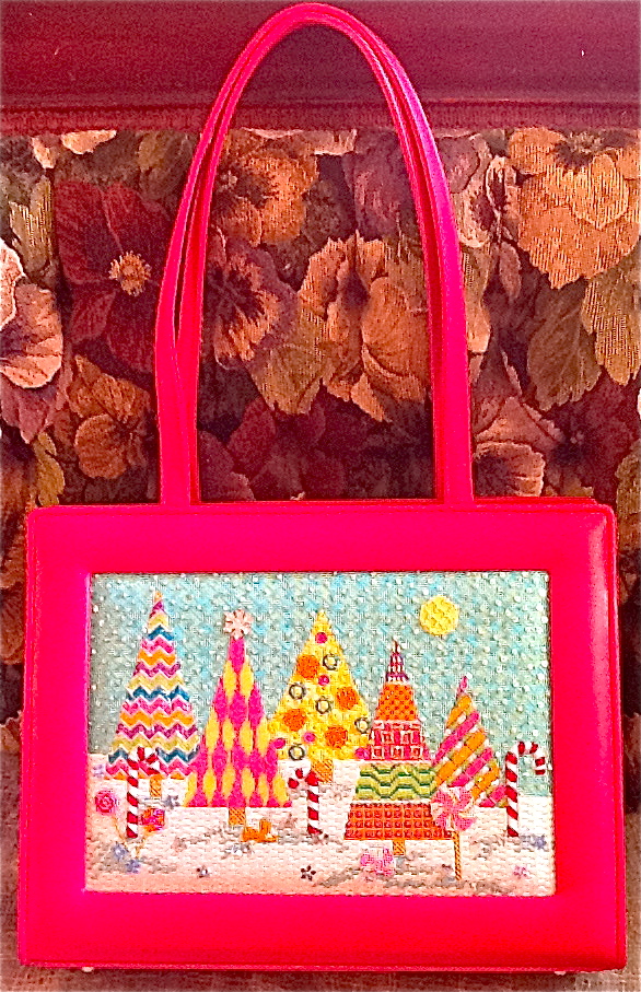 Additionally, Barbara's Needlepoint intends to teach this piece in a class later in the year, I'll post more details when they are available. Thanks to Stephanie Wong for sharing photos of her finished Candyland Christmas with me-- she took it to Marlene's in San Francisco and had it finished into this fabulous leather purse, complete with a gorgeous green lining and monogramming! It came out really great and I can only imagine the complements she's going to get carrying it around-- thanks Stephanie!