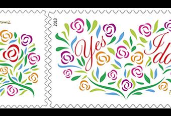 The smaller stamp is sold in an increment of $.46 and the larger stamp is available for the 2 oz. invite, $.66... Check out the official release from U.S.P.S.