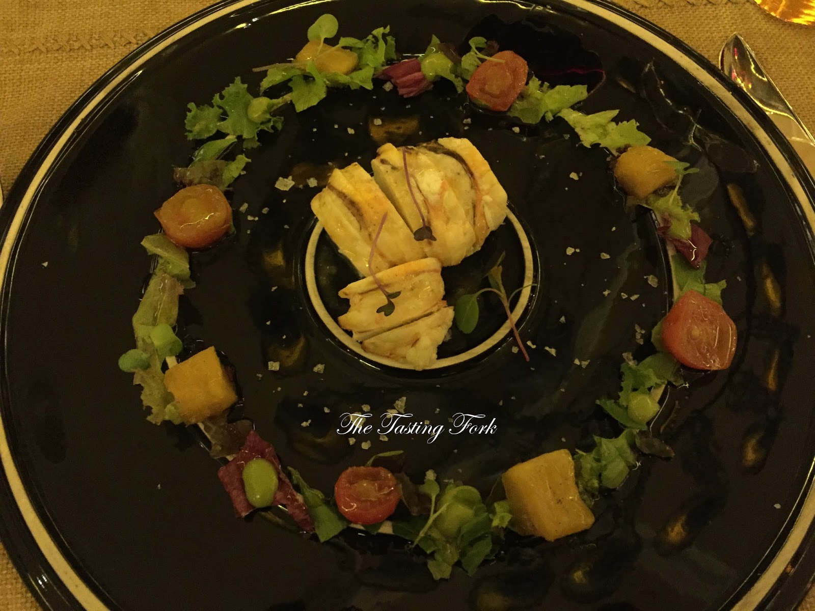We were served a bread basket with two superb dips to go with. And then we started with the courses. The first course was Antipasti- Lobster Salad with vanilla pineapple, mustard coulis and avocado reduction. Now you read that again and tell me what’s not to like in this. You have a delicious balance of sweetness and saltiness, the vanilla pineapple was brilliant, and the lobster was so tender. With cherry tomatoes and some greens, this also had a freshness factor to it. Amazing stuff! What came next was even better- a Parmigiano reggiano soup. I mean really! A Parmesan soup that was surprisingly not at all heavy. An outstanding soup! Had some truffle oil in it, a nice crisp bread on the side, and I could finish off my bowl within no time. Excellent flavours and something very unique.