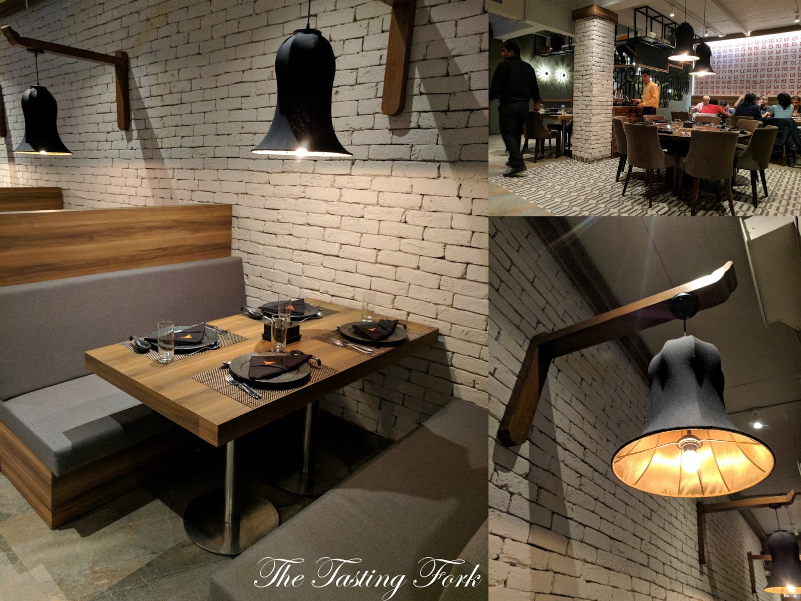 The place is spread across two floors, and has both outdoor and indoor seating. Comfortable sofas and chairs with lamps hanging on each table, yellow lighting dominating the scene and a decently sized place. The second floor of the restaurant is the terrace area. Beautiful and simply perfect for Delhi winters!