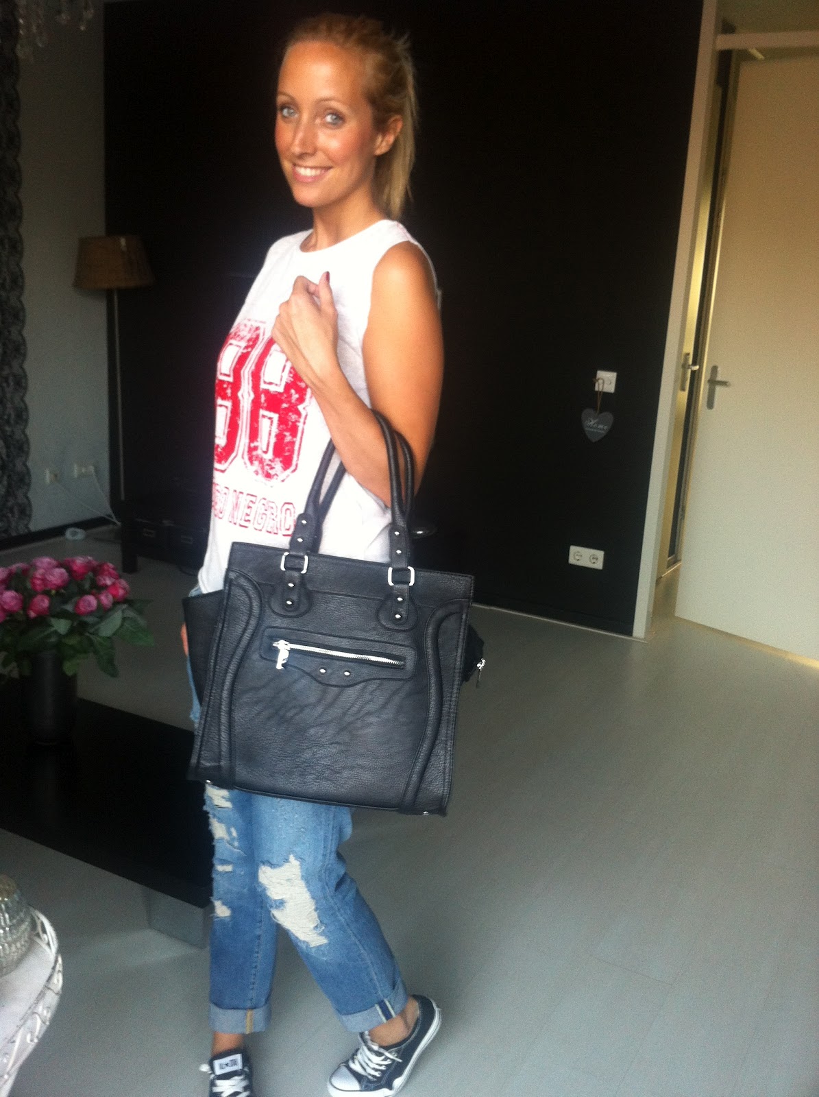 RECEIVED THIS BAG FOR MY BIRTHDAY FROM MY NEW JOB, HOW COOL IS THAT!? CELINE K.O. WEARING IT WITH MY NEW NUMBER TEE ALSO FROM MODEMUSTHAVES.COM