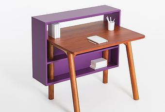 The PLAYplay collection by Lanzavecchia + Wai for Journey East features the Bazaar desk, a compact writing surface with built-in shelves that can be accessed from both sides of the piece.
