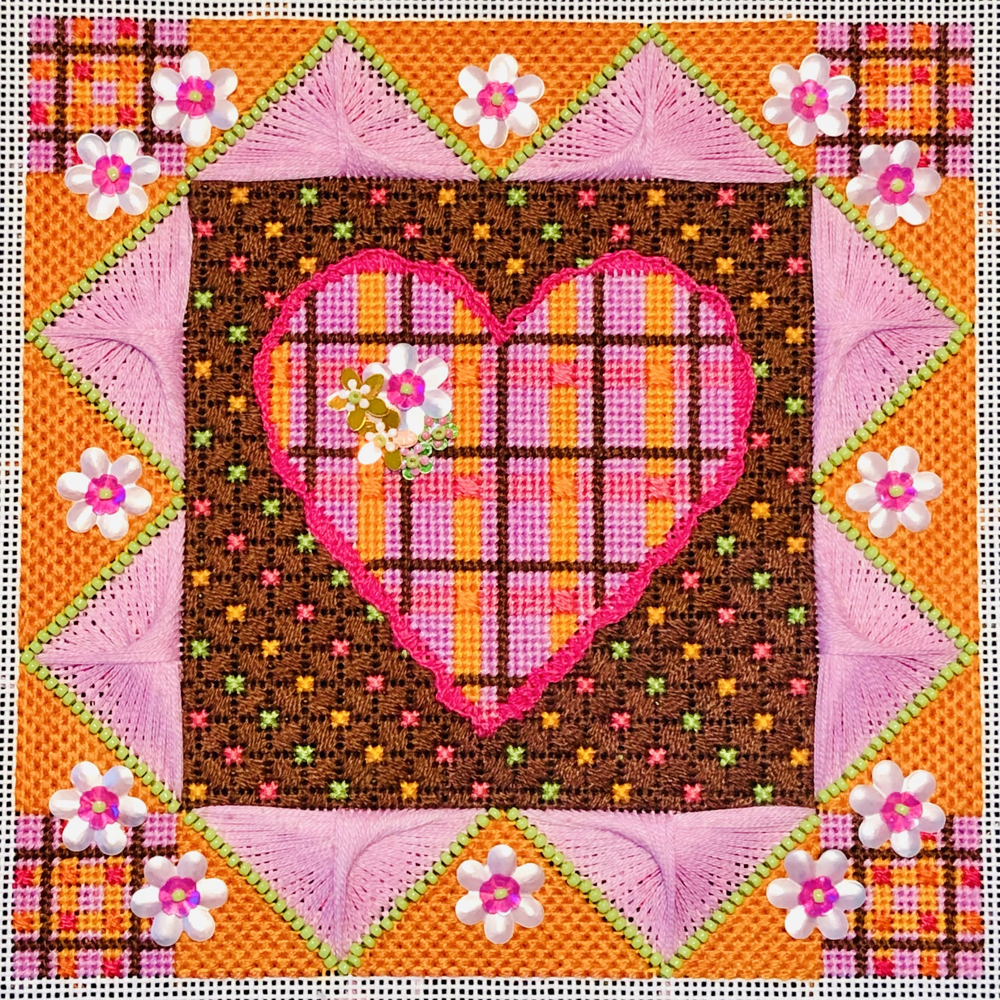 H110A Pink Plaid Heart: This guide I cannot take full credit for, because I discovered this canvas for sale online in mostly-stitched condition. I simply completed it, the stitches were the choice of an unknown and very talented stitcher. My contributions were the addition of the sequins, which are included with the stitch guide.