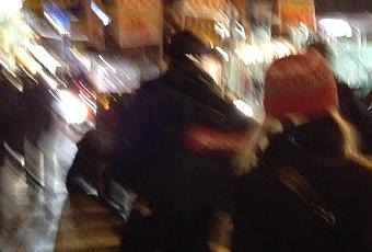At eight o'clock lots of people wandering aroundlooking at the shop windows
