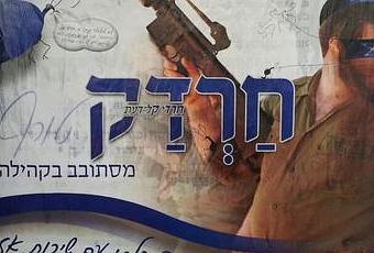 It says "Chardak - Chareidi Kal Daat, (meaning: Chareidi light-minded) I started doing civil service and in the end I lost my identity" In other words its saying that if you force us to the army we will lose our identity.