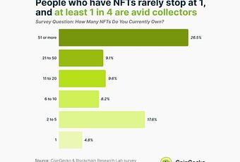 The majority of NFT holders own 51 or more NFTs, according to the survey results published by the crypto data website CoinGecko and Blockchain Research Labs. The respondents who only possess a solitary NFT constituted the smallest group.