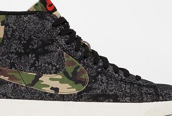The Nike Blazer Mid has had much iteration the past year and the latest update has some bold patterns that has become familiar and expected of sorts. The Nike Blazer Mid Vintage Premium Camo Swoosh that features black and grey floral printed base with green, black, tan and brown camouflage print on the Swoosh, heel tab and tongue. The sneakers are rounded up with black laces and a white rubber midsole to finish the look. This is sure to be yet another hot commodity that deserves a job well done pat on the back for the designer.