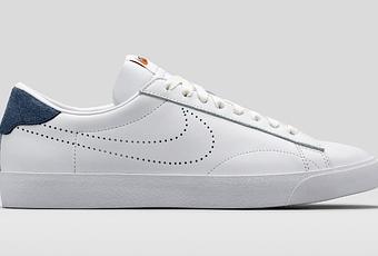 This retro classic by Fragment Men’s Shoe fuses heritage tennis style with fresh details. This update features premium leather with the Nike logo perforated in on the side. It has a slightly higher heel accent but still retain the iconic tennis shoe’s clean lines. The white leather is rounded off with navy suede at the heel.