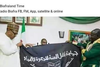 Reacting to the killing on his Facebook page on Saturday, Nnamdi Kanu shared a picture where President Buhari and the Chief of Army Staff, Tukur Buratai, allegedly holding the ISWAP flag with a caption “Get ready!”