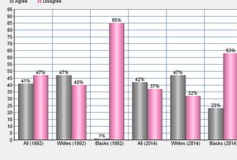 These two charts were made from surveys taken by YouGov Poll in 1992 (right after the Rodney King beating) and 2014 (after the murder of Michael Brown).