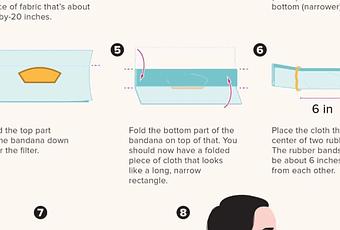 And here's an illustration how to put a filter in the middle of your DIY face mask according to Healthline: