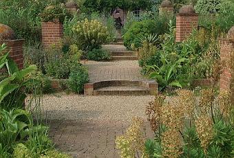Our first visit today was to Corpustry Mill Garden which is owned and designed by Roger Last who produced/directed over 30 films on art, architecture and design for the BBC. The garden was split into 3 sections. The first, around the house, was very formal and landscaped. The second was informal and centred around a large pond with lots of subtly placed figurines. For instance, at the edge of the pond in the water, under a brick built arch, was the top half of a lady's head and two hands as if she was drowning! The third I didn't see, but it has been dubbed by the group as 'the garden with 2 penis's' because of 2, apparently grotesque, statues of naked men!