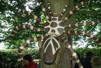 But saying that we didn't buy any climbers this time and came home with just four select plants. Plant buying for us wanes as the season progresses but possibly peaks again if there are good sales around in the autumn (and then almost none in the winter).We stayed at the fair for an hour and a half before heading home, back by noon and spent the rest of the day gardening. The highlight of our visit though was this large wooden spider, we had to have this beast the moment we saw it.