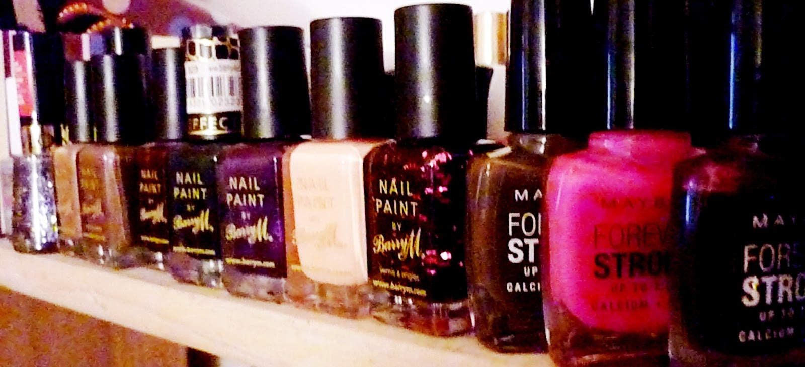 I am a nailvarnishaholic! I cant leave the house without nail varnish on, I hate the way my nails look without it. I love seeing my nails freshly painted and all shiny. NOTD posts will likely be a regular post topic for this blog as I love to try out new things. As you can see I have my nail varnishes on a shelf, this is just the front row and there are around 5 rows of varnish pots on this shelf!