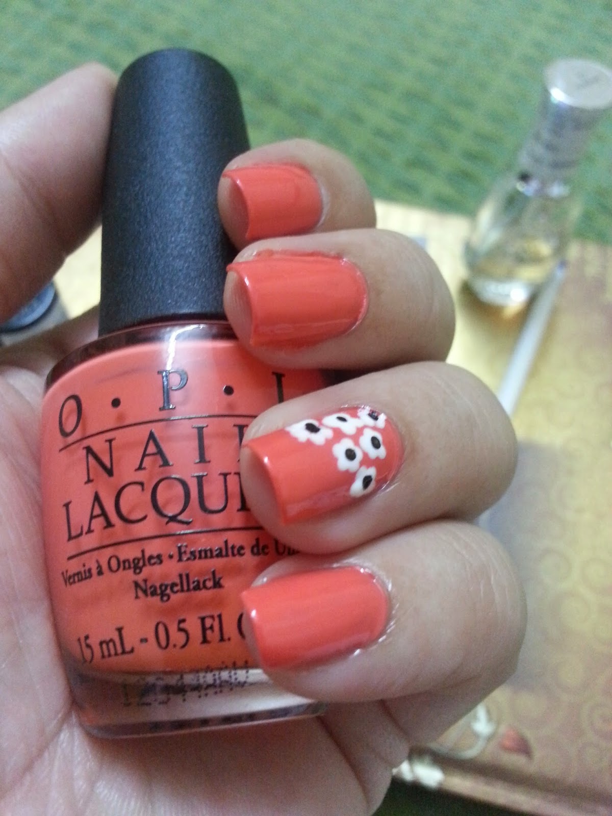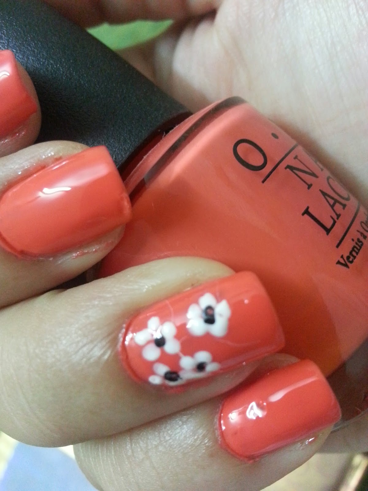Come summer my best buddies are orange tang, orange ice candies and bright white/ orange clothes and accessories. Spring has got us some beautiful blossoms in the air. So why not combine the two for a lovely nail art representing the spirit of the season.