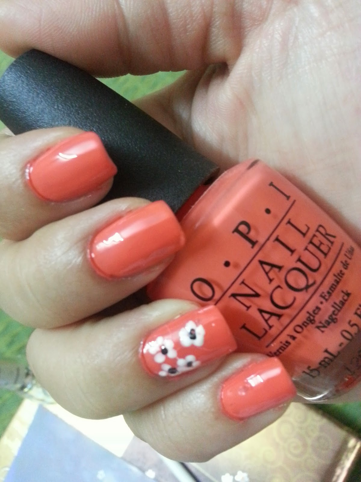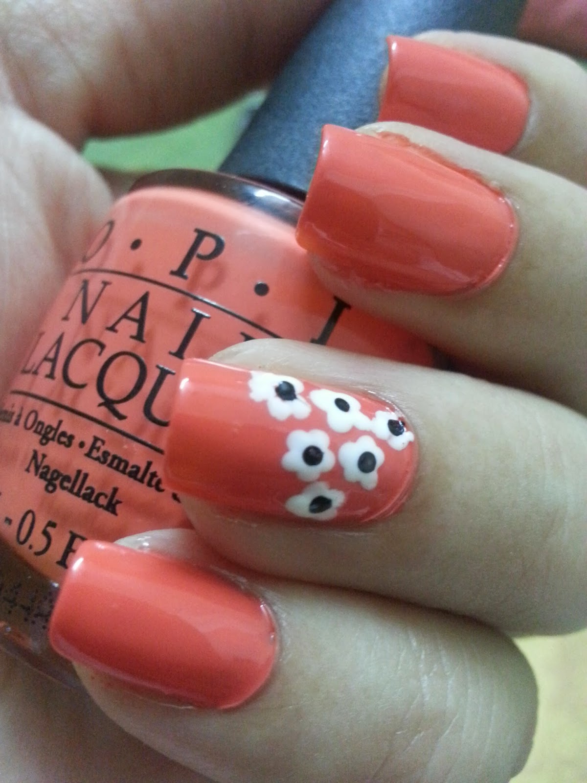 Come summer my best buddies are orange tang, orange ice candies and bright white/ orange clothes and accessories. Spring has got us some beautiful blossoms in the air. So why not combine the two for a lovely nail art representing the spirit of the season.