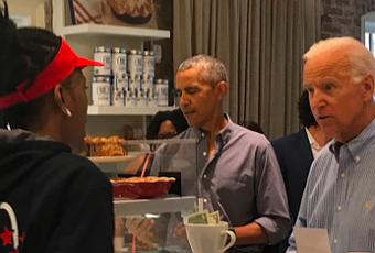 Obama and Biden met the employees, took selfies with them and talked to them about their future business plans for about 20 to 30 minutes. They also grabbed a bite to eat.Look who stopped by @DogTagBakery for lunch today! Thank you @BarackObama and @JoeBiden for supporting our mission of empowering veterans with service-connected disabilities, military spouses, and military caregivers! #BakingADifference #veterans #milspouses #caregivers pic.twitter.com/bLHttsgXJF