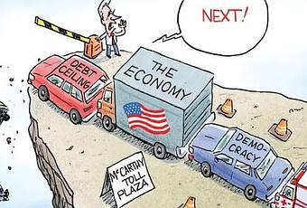 Off The CliffPolitical Cartoon is by Christopher Weyant in The Boston Globe.