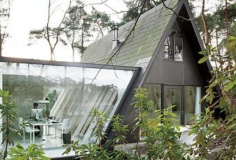 A glassed-in addition in the Belgian forest provides a peaceful atmosphere. The resident works on a Tense table by Piergiorgio and Michele Cazzaniga and Flow chairs by Jean Marie Massaud, both for MDF Italia. Photo by Jane Szita