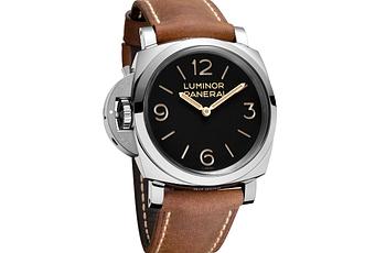 Officine Panerai are a unique watch brand with a large selection of watches for those who wish to wear their watch on their right wrist without the crown being uncomfortable. This PAM00557 Luminor 1950 model has the trademark protected brushed steel crown on the left with a see-through sapphire crystal back where the hand-wound mechanical movement can be seen. This watch is best suited for casual attire with its brown leather strap and a large brushed steel buckle. It is also water resistant to 100 metres.