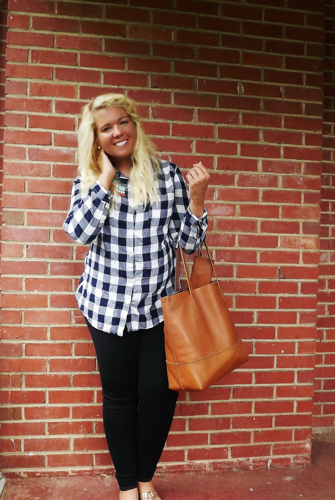 This is one of my easy outfits and I love it. I feel like I'm lounging around in leggings and a lightweight shirt, yet I'm somewhat pulled together. With my hair being it's natural wild self, adding a tough of accessorizing to the outfit makes it look a little more tame. The checked shirt is definitely more of a fall piece but it's lightweight enough that it works for a cooler summer day. Just wait to see how I'll style it in the fall! Is it bad that I'm already thinking about my fall wardrobe? My goodness I have issues. Are any of y'all thinking about fall too? Maybe you should be with all of the great sales STILL going on with brands trying to clear out their fall merchandise. Just a thought. Happy Wednesday! In Two Days...WE CELEBRATE AMERICA! xoBCC