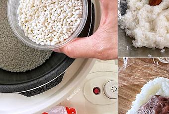 *Anko Ohagi: Wrap one kuri kanroni in rice. Then wrap up with red bean paste