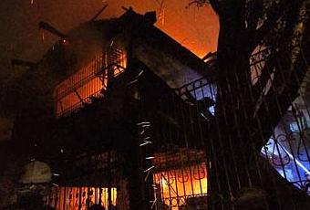 Firemen train the hose to save the old ancestral house engulfed in flames along Lamayan St. in Sta. Ana Manila early morning, February 18, 2014. Around five families were affected and P3 million in property was destroyed. No one was reported hurt.