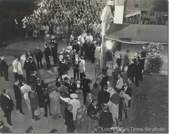 The whole party were certainly dressed up, all the boys in tuxedos and the girls in formals.The premiere was at Carthay Circle. The crowds simply jammed the streets as we arrived. The police, both on foot and mounted, were trying to hold the people back, but each person was trying to get a glimpse of the Stars.