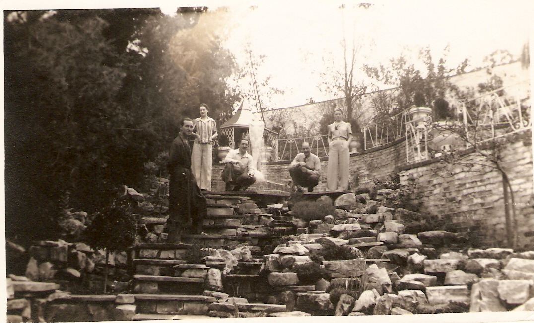 Tom Lyle Williams on the left, followed by his sister Mabel, her husband Chet Hewes, and his sister Eva and her husband Ches Haines. Notice the statue, Aspiration in the background.