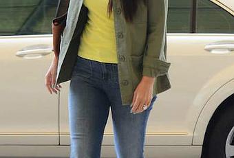 Kareena Kapoor Khan Kareena Kapoor’s style statement is a must watch. She not only mesmerises with her acting skills but even glue us with her sartorial choices. Whether it is red carpet or runway, she has stolen our hearts and her airport style is always been splendid. Bringing back the bell bottom jeans which were once popular in the 1960’s, wearing a yellow tank top with green military jacket. We love this ‘Up Class’ style.