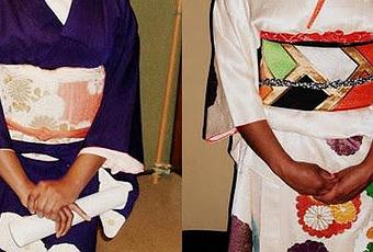 On the left me wearing a irotomesode, the kimono for married women and on the right one me wearing an furisode, the kimono worn by young noble women usually for their 20th birthday.