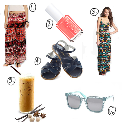 Summer here in Philadelphia is not my thing. I can either be really good at it or really bad at it. Last year I feel like I was really good at it. I enjoyed it actually. This year not so much. I guess I'm just not in the mood for sweating all the damn time. For me though, sometimes having the right summery things will make the time pass better so I came up with some of my current summer swoons. Lately I've been living off of iced or hot chai tea lattes. Being a barista I get to have chai all the time but secretively I prefer Oregon Chai over my own chai at the coffee shop. Don't tell anyone. Also I don't know about you but nail polish can brighten my spirits and so I picked a new color up yesterday, a mixture of a coral and tangerine, perfect for Summer!