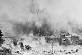 In 1921, Greenwood (in Tulsa, Oklahoma) was one of the most prosperous African-American communities in the U.S. Serving over 8,000 residents, Greenwood’s commercial district was known nationally as the ‘Negro Wall Street’. The community boasted two newspapers, over a dozen churches, and hundreds of African-American-owned businesses. On the evening of May 31, 1921, Greenwood was ravaged by a white mob. By the conclusion of the riot at midday, June 1, virtually every building in a 42-square-block area of the community--homes, schools, churches, and businesses--was burned to the ground and thousands were left homeless. Over 1,200 homes were destroyed. Every church, school, and business in Greenwood was set on fire. Approximately 8,000 African-Americans were left homeless and penniless. (Continue reading here: http://bit.ly/1pGWfv5.)