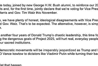 This open letter was issued and signed by 238 staff members of George H.W. Bush, John McCain. George W. Bush, and Mitt Romney.