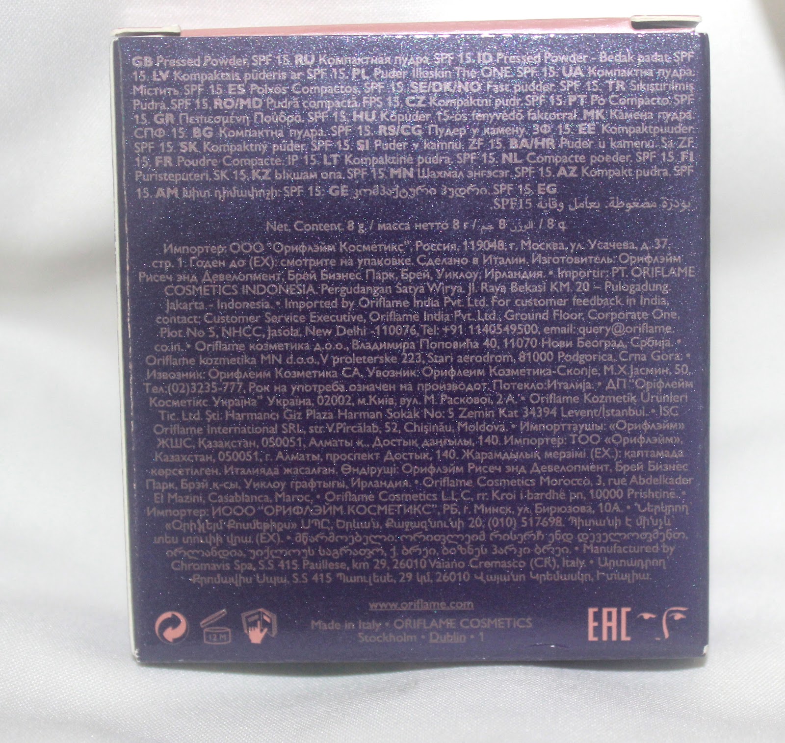 Shades of Oriflame The One Illusion Powder:This is available in 3 shades namely-· Light- best suitable for fair skin,· Medium- for fair to wheatish complexion&· Dark- dark wheatish complexion.