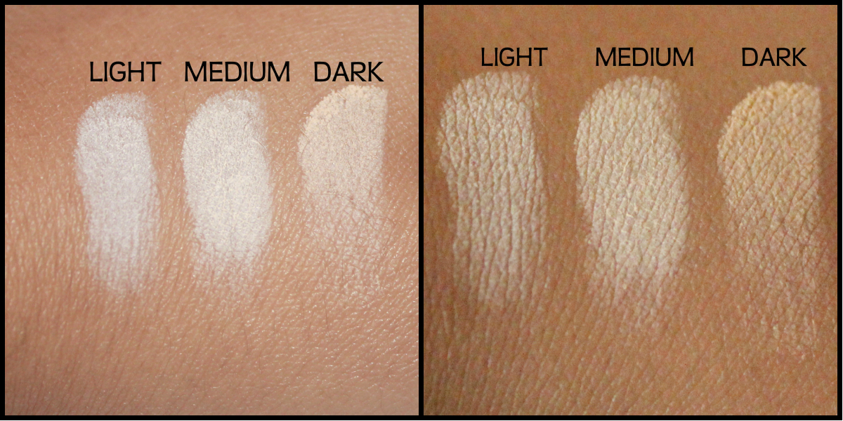 Swatches of Oriflame The One Illusion Powder Light, Medium & Dark: