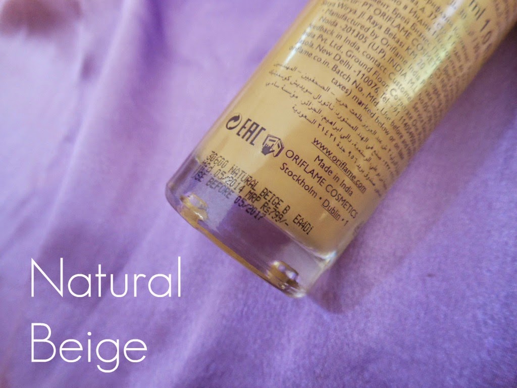 Oriflame The ONE Illuskin Foundation comes in a sleek transparent glass bottle with purple colored pump dispenser with a transparent cap over it to prevent any dust/germs from going in. I personally like plastic bottles because glasses are prone to breakage. The pump dispenser has a on and off switch like mechanism, which controls the amount you need and avoid wastage during travel. Overall packaging seems very light-weight and you can easily carry it around in your bag, though over time the pump and cap do tend to get a little messy because of product accumulation around the nozzle and on the cap.The texture of the foundation is light and neither too runny, nor too thick. It spreads and blends quite easily within seconds of massaging it into the skin. The foundation is not too rich or emollient in texture so women with dry/combination skin would need to ensure that their skin is moisturized before they use this product. However, even when applied on mildly dry skin, it doesn’t get patchy or uneven and just blends seamlessly. I have used this with fingers and with a foundation brush and I feel fingers work best with this foundation, the warmth of the fingers aids the blending.The coverage is medium but buildable, sufficiently good to cover up under eye pigmentation as well as blemishes. The finish is not quite dewy but not matte- results in a healthy, glowing look (similar to L’Oreal Paris Nude Magic Liquid to Powder Foundation) which is why I think women with normal and combination to oily skin would like this foundation more. It holds up quite well under hot, humid conditions so that makes it excellent for the Indian weather conditions. It minimizes imperfections like pores etc. to give smoother, more flawless looking skin. It doesn’t settle into lines/pores of the skin. It gives a very soft, natural glow to the skin while still having a matte finish which is one of my favorite things about this foundation. I’ve worn this for over 10 hours and my skin was quite fresh and luminous after all that time and I could barely notice any oiliness on my T-zone. It contains SPF 20 but doesn’t look ashy in pictures.Natural Beige bests suit my skin and blends into my skin giving a very natural yet dewy finish.