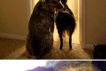 Nick Radford was in the woods shooting some photographs when he came across a baby squirrel. He was clinging to his lifeless mother, who appeared to have been struck by a car. The poor little thing was hypothermic, and Nick knew he wouldn’t survive on his own. e carefully scooped him up and brought him home. He named the baby Apple Moonbeam and introduced him to his two dogs, Maverick and Scout, who took him in like one of their own.