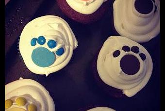 We used coloured chocolate discs to create paw prints on the cupcakes.