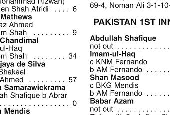 Pakistan openers Abdullah Shafique and Imam UL Haq were failed to make good start as Asitha Fernando took an early breakthrough to get Imam’s wicket while Nishan Madushka took a very fine catch at gully position. However Shafique (74) and Shan Mashood who scored 51 in 47 balls with 4 fours and a six added 108 runs second wicket stand and Skipper Babar Azam was not out 8 in 21 balls at the wicket. Asitha Fernando was the successful bowler took both wickets given away 41 runs while Dilshan Madushanka the Test debutant given away 28 runs in his 5.3 overs with wicketless at close.