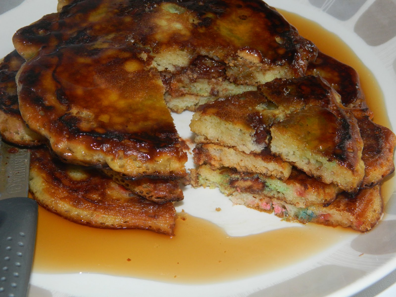 When I woke up this morning my sister had made a pancake mix and had left me some. I didn't fancy plain pancakes and I remembered that I had some Peanut Butter M&M's left over and only the day before had someone on my facebook posted a picture of their M&M pancakes. So that's what I did and omg were they AH-MAZE-ING.