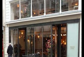 Paradis has received a welcome welcome from the Figaro guys and Trip Advisor, but has pretty much slipped under everyone elses' radar. It's on the street where all the crystal & dinner ware folks used to be; the street goes from scuzzy to Bobo to haute in a few hundred meters. The resto itself is really cool; all glass, raw wood, neat rug under the common table and a very cool metal staircase railing (our dining partner said it was bought at auction and came from the France (remember the elegant ship?).