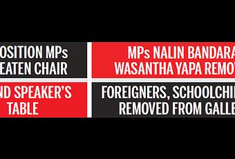 Accordingly, the officers were led by the Serjeant-at-arms Narendra Fernando arranged to remove the two MPs from the Chamber.