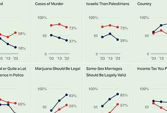 Partisanship Has Increased On Most IssuesThe charts above are from a Gallup Poll -- done in 2003-2004, 2013, and 2022-2023 in all 50 states.