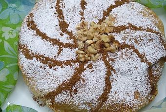 6- Brush the pastilla with the egg yolk. Bake in the middle of the oven at 180 °C until the pastilla is golden brown. Remove the pastilla from the oven and let it cool down a bit, then garnish it with icing sugar and cinnamon.