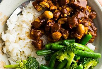 - the sauce completely masks the tofu flavor (which is just not a flavor we enjoy!)