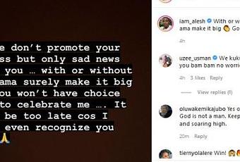 "People don't promote your success but only sad news about you. With or without you ama surely make it big and you won't have choice than to celebrate me. It might be too late cos I won't even recognise you then, " he wrote.